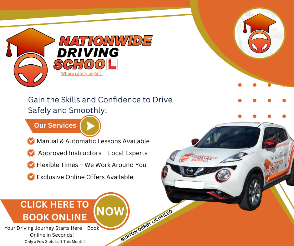 Covering areas for driving instructor Training Derby Burton upon Trent, Rolleston on Dove, Tutbury, Hatton, Hilton, Uttoxeter, Barton-under-Needwood, Alrewas, Lichfield, Tamworth, , Ashby-de-la-Zouch and surrounding areas.